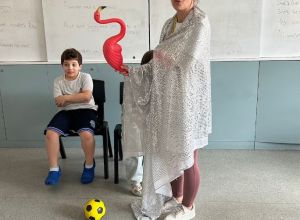 We use Active Storytelling based on the stories and adventures of Jazzy the Juggler as a method to teach public speaking, listening, reading, writing and grammar skills as well as phonics and pronunciation.