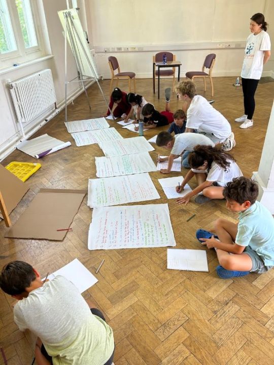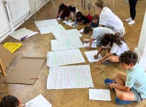 Children experience no screens/no screentime. We work with fabric puppets, paper workbooks, arts, crafts, material for scenery, costumes and props.