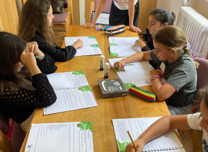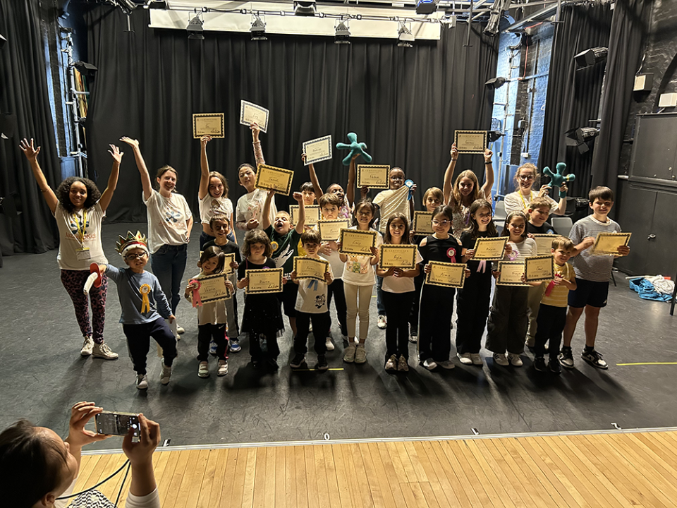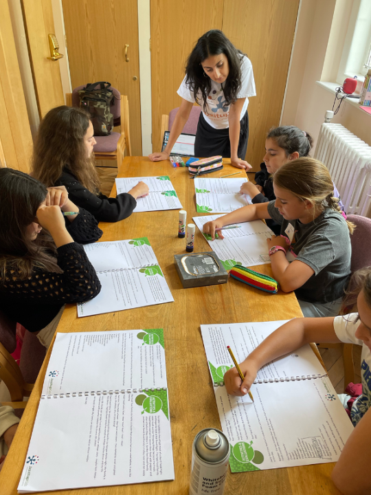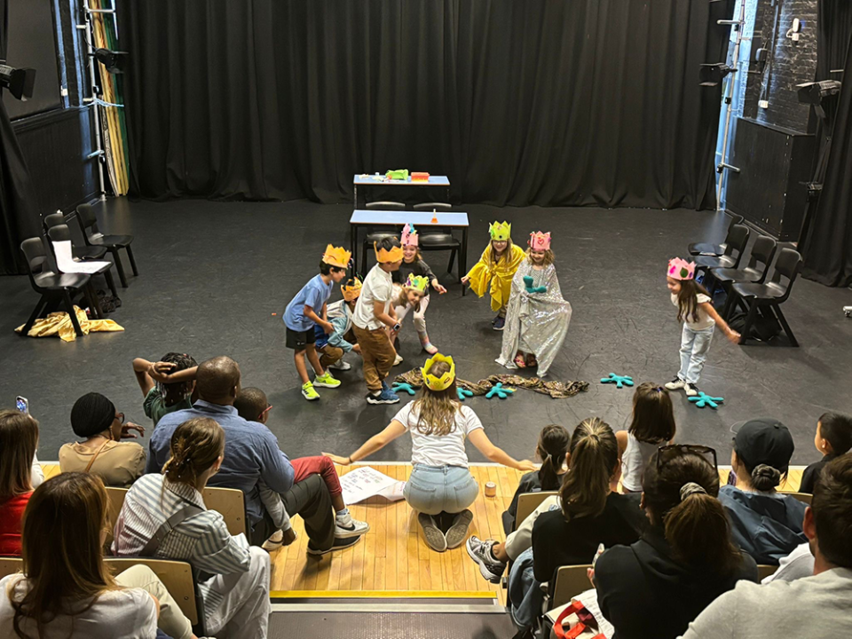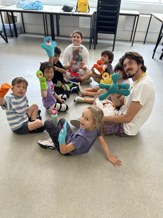 Children experience no screens/no screentime. We work with fabric puppets, paper workbooks, arts, crafts, material for scenery, costumes and props.