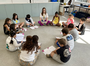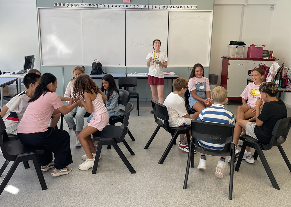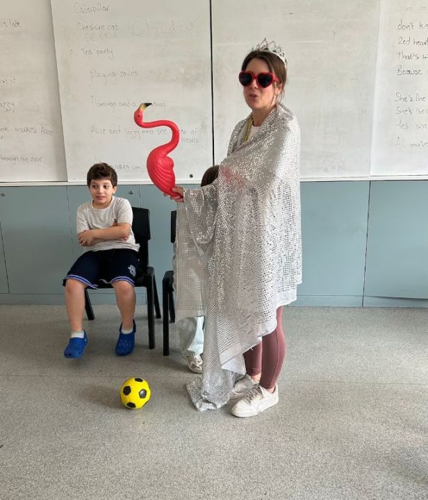We use Active Storytelling based on the stories and adventures of Jazzy the Juggler as a method to teach public speaking, listening, reading, writing and grammar skills as well as phonics and pronunciation.